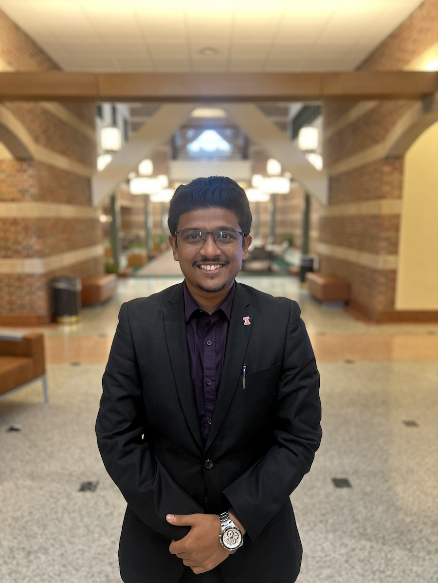 Aravind "Babs" Baby. Credit: Lily Dokhanchi, Beckman Communications Office.Currently pursuing his Ph.D. in materials science and engineering at the University of Illinois Urbana-Champaign, Babs defended his thesis in April and will deposit his dissertation this fall. He works with Joaquín Rodríguez López at the Beckman Institute for Advanced Science and Technology, using principles of chemistry and electrochemistry.